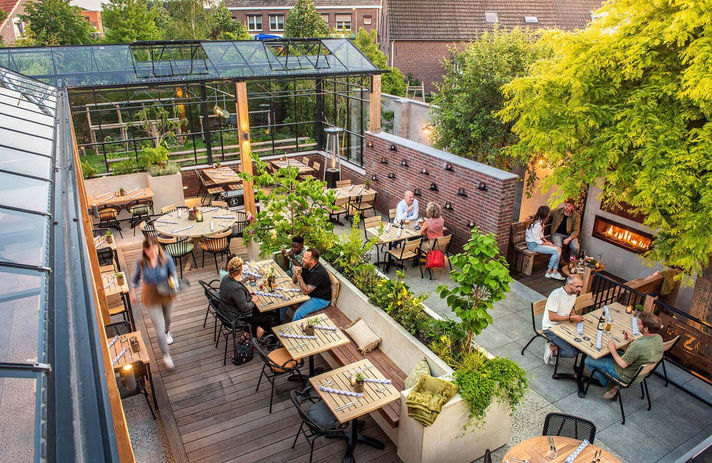 Het interieur sluit aan bij het gewenste gevoel: eerlijk, robuust, maar gezellig. In 2016 werd de eerste fase, het café, opgeleverd. Daarna volgden de bierkelder, de zaal met een koperen ketelbar en de buitenterrastuin.